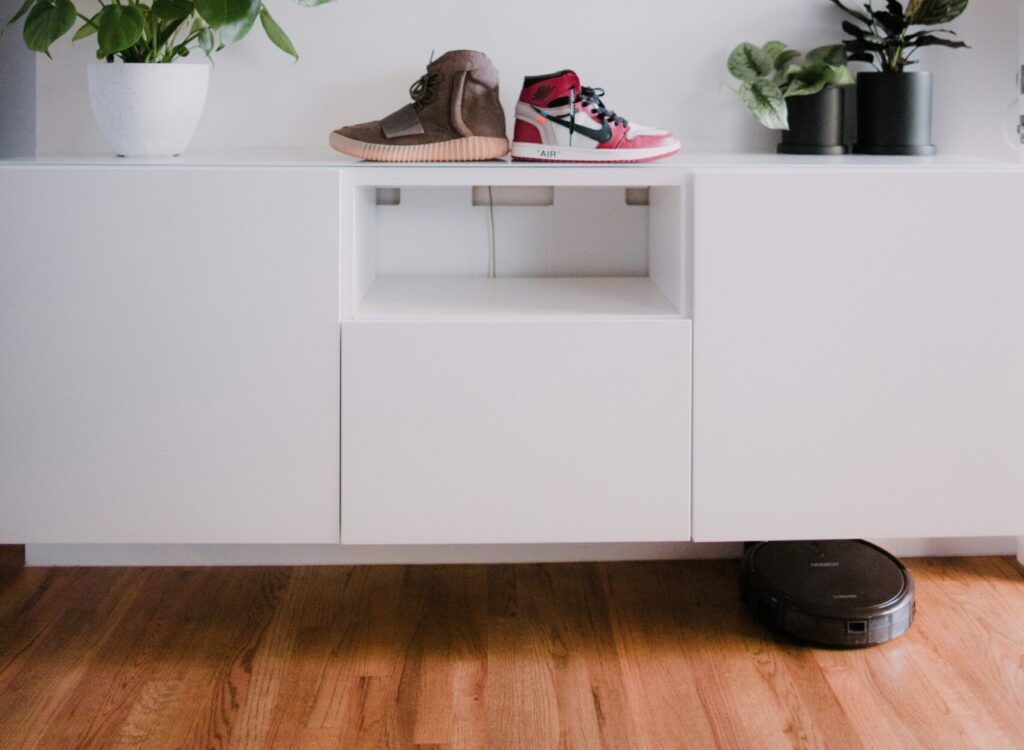 4. Floating TV Stand: Robot Vacuums Fit, and It Looks Airy